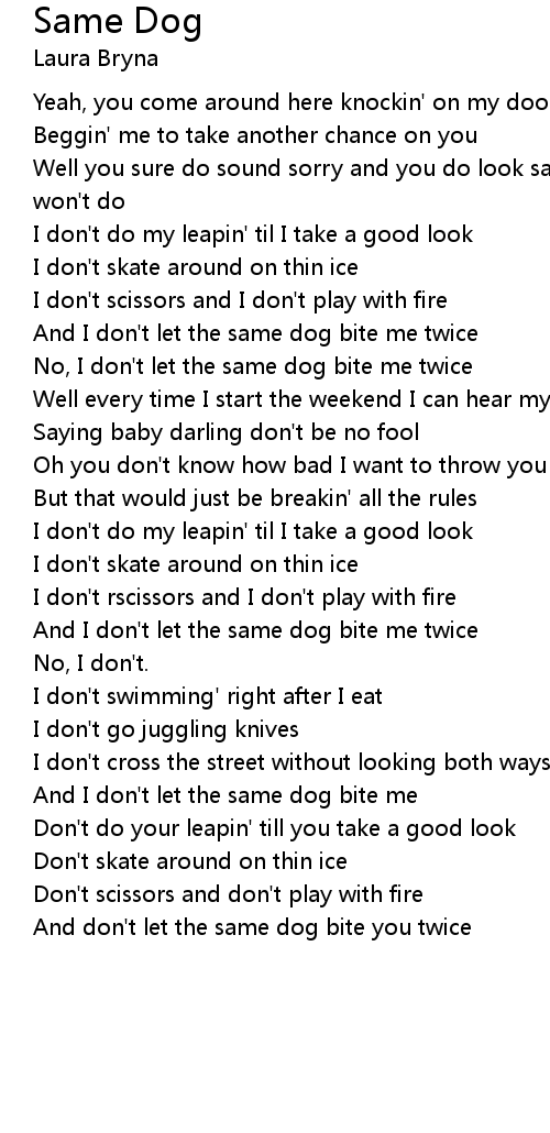 And I don't let the same dog bite me twice |