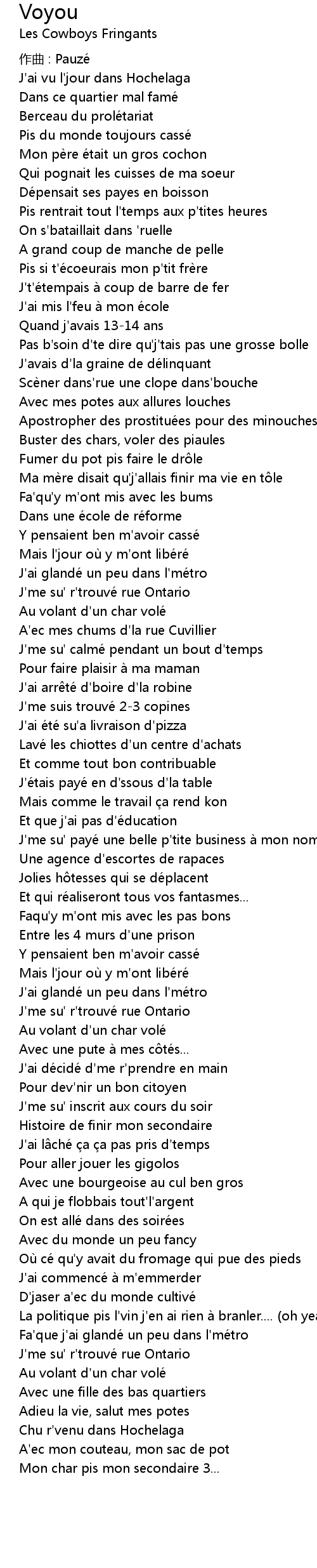 | 歌曲 | Voyou |