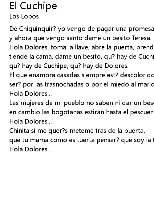 qu? hay de Cuchipe, qu? hay de Dolores. |