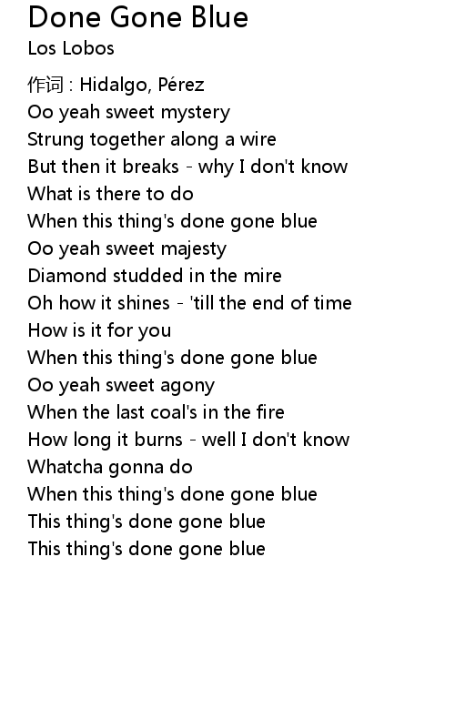 | 歌曲 | Done Gone Blue |