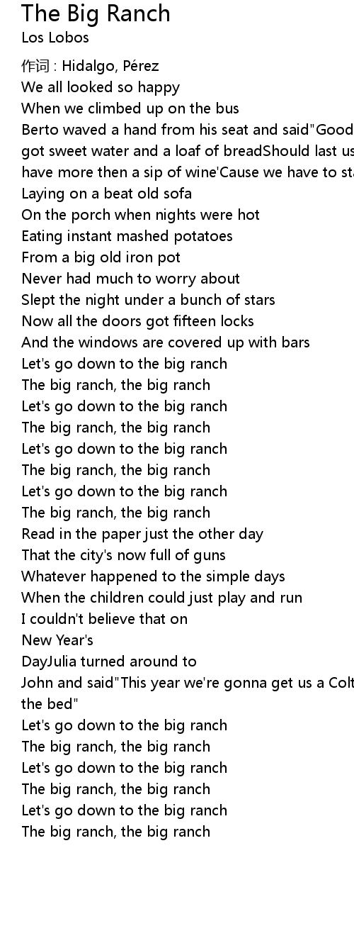 | 歌曲 | The Big Ranch |