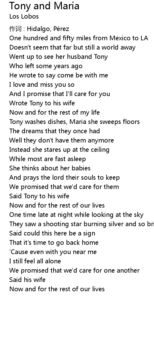 | 歌曲 | Tony and Maria |