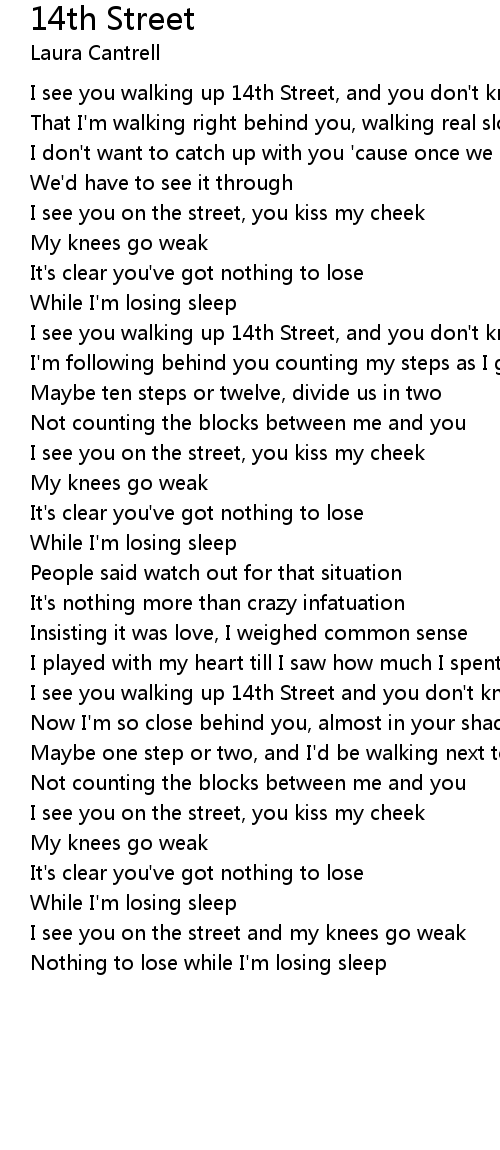 I see you walking up 14th Street and you don't know |