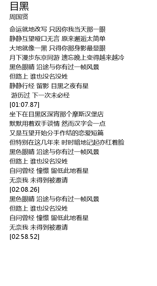 | [00:53.57] | 静静行经 留影 目黑之夜有星 |