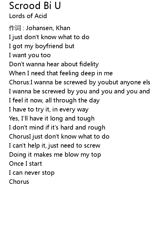 | Chorus:I wanna be screwed by youbut anyone else will do | |