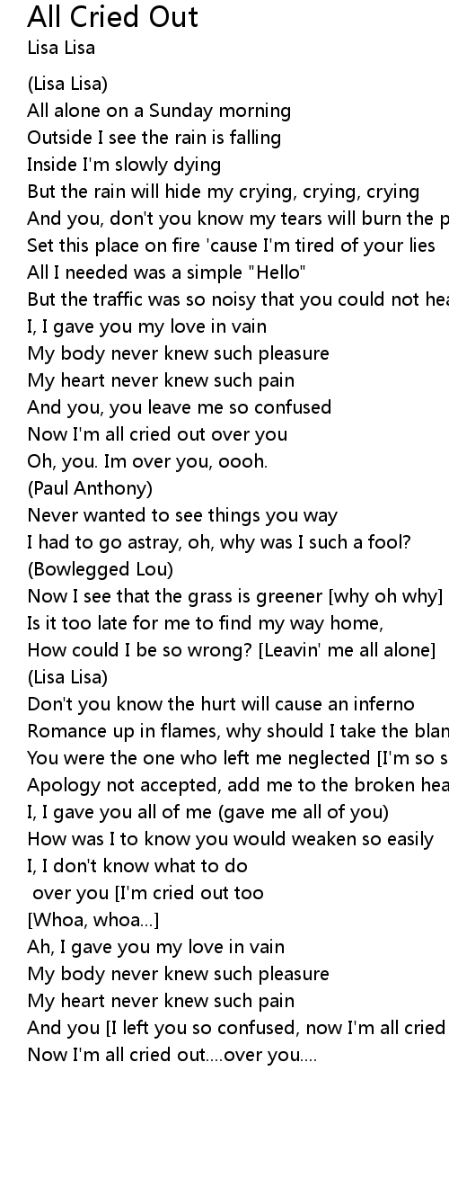 All Cried Out 歌词