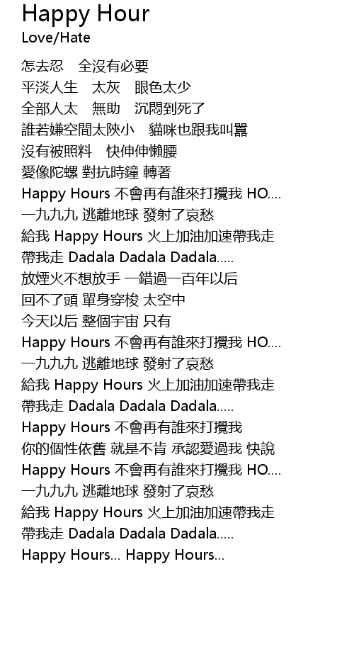 | [03:01.00] | 給我 Happy Hours 火上加油加速帶我走 |