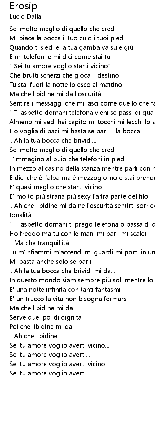| Almeno mi vedi hai capito mi tocchi mi lecchi lo sai che mi va" | |