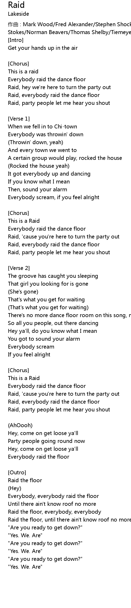 | 作曲 : Mark Wood/Fred Alexander/Stephen Shockley/Fred Lewis/Marvin Craig/Otis Stokes/Norman Beavers/Thomas Shelby/Tiemeyer Le-Mart Mccain | |