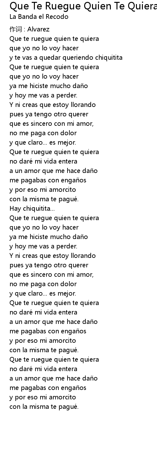 | 歌曲 | Que Te Ruegue Quien Te Quiera |
