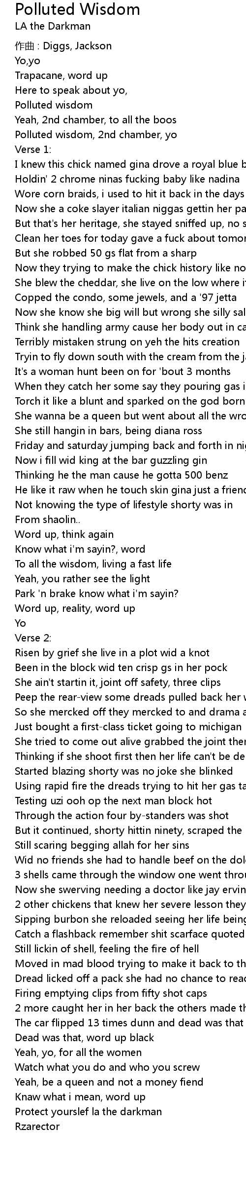 | But that's her heritage, she stayed sniffed up, no sorrow | |