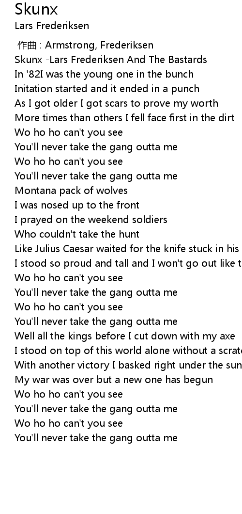 | [00:00.00] | Skunx Lars Frederiksen And The Bastards |