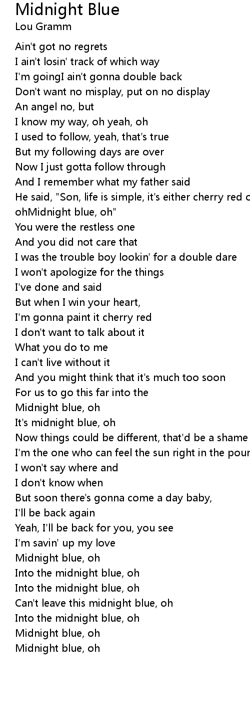 He said, "Son, life is simple, it's either cherry red orMidnight blue, ohMidnight blue, oh" |