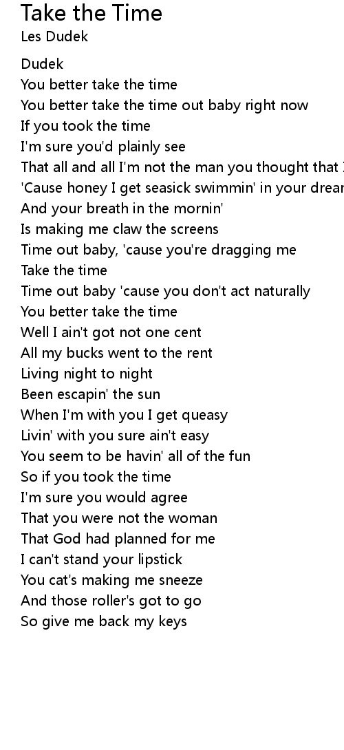 You better take the time |