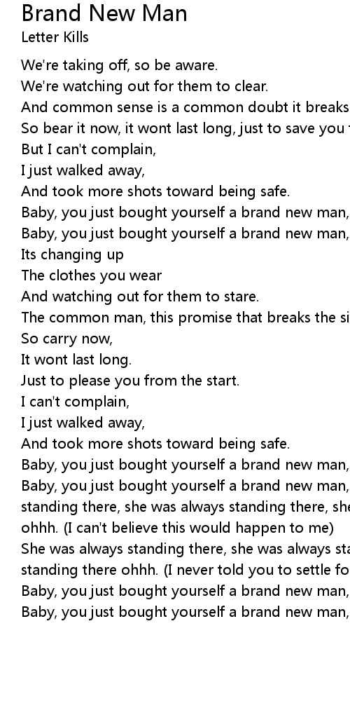 Baby, you just bought yourself a brand new man, a brand new man. she was always standing there, she was always standing there, she was always standing there ohhh. (I can't believe this would happen to me) |