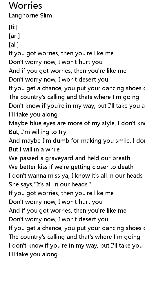 And if you got worries, then you're like me |