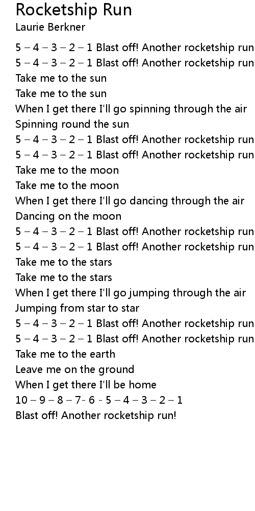 | 5 4 3 2 1 Blast off! Another rocketship run | |