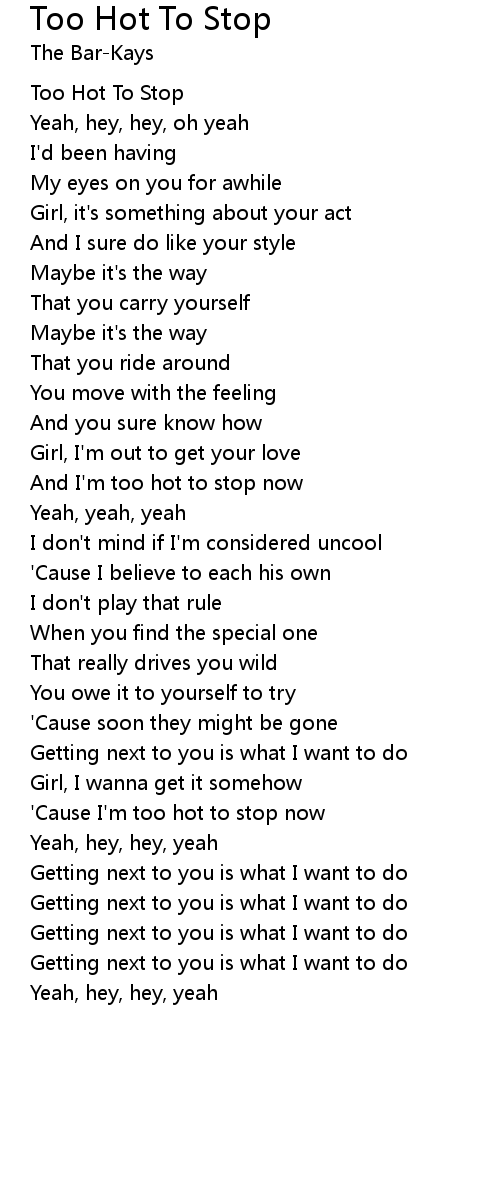 And I'm too hot to stop now |