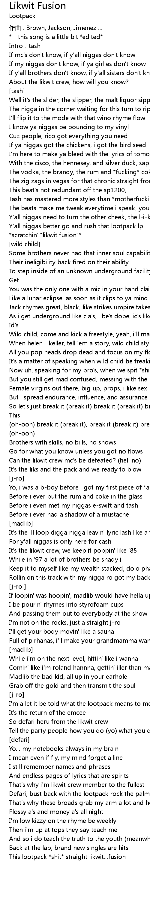 | It's the ill loop digga nigga leavin' lyric lash like a whiplash | |