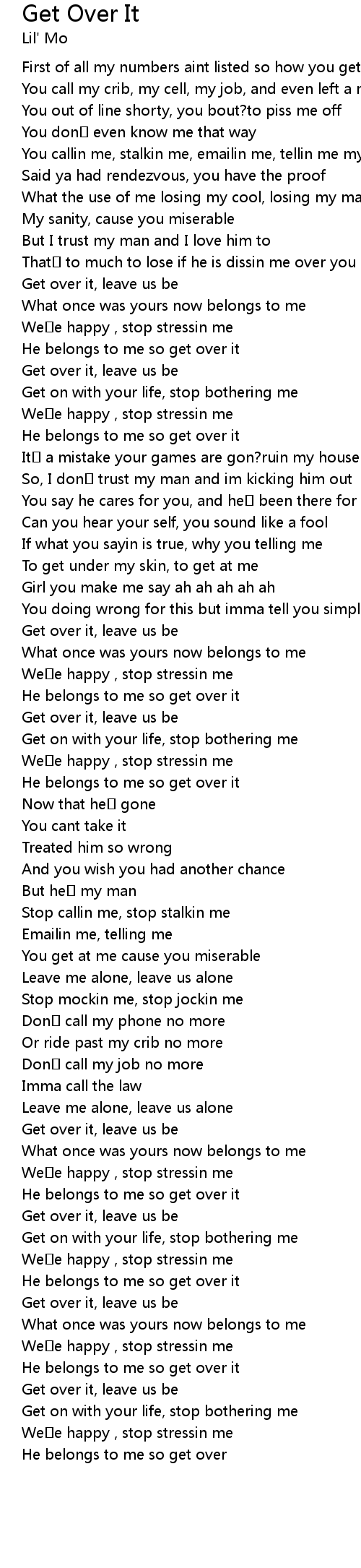 | You callin me, stalkin me, emailin me, tellin me my man aint being true | |