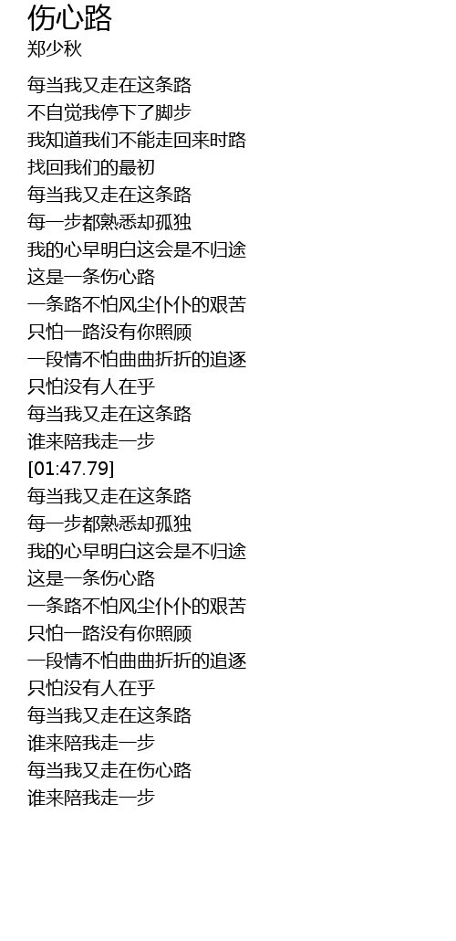 | [00:46.79] | měi dāng wǒ yòu zǒu zài zhè tiáo lù |