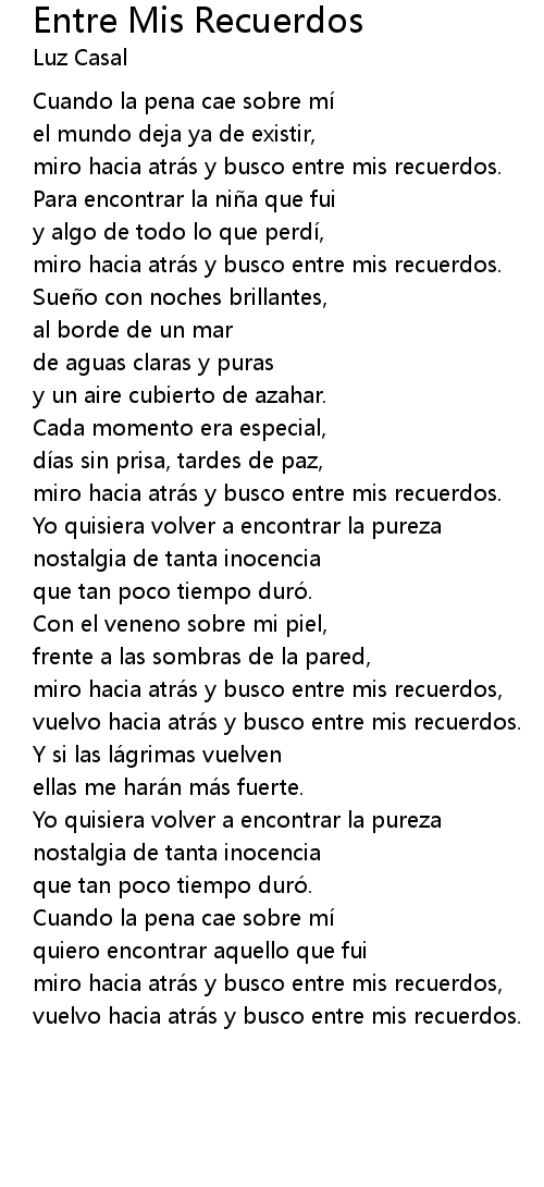 | miro hacia atrá s y busco entre mis recuerdos, | |