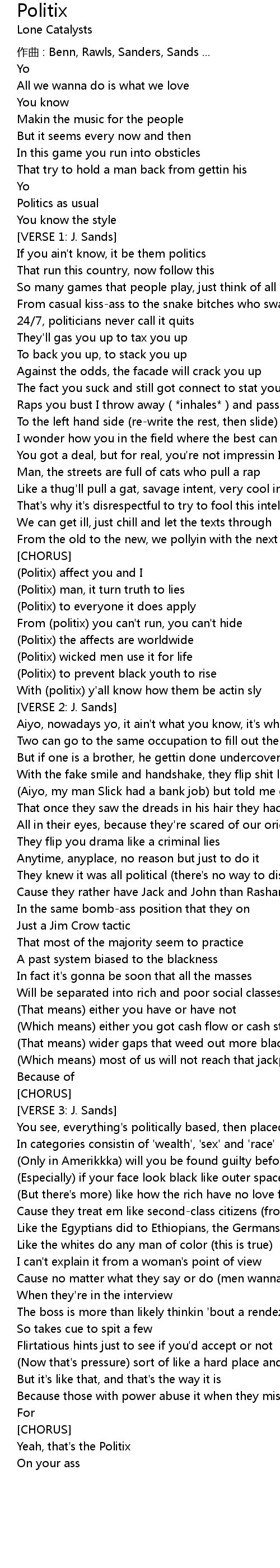 | With politix y' all know how them be actin sly | |