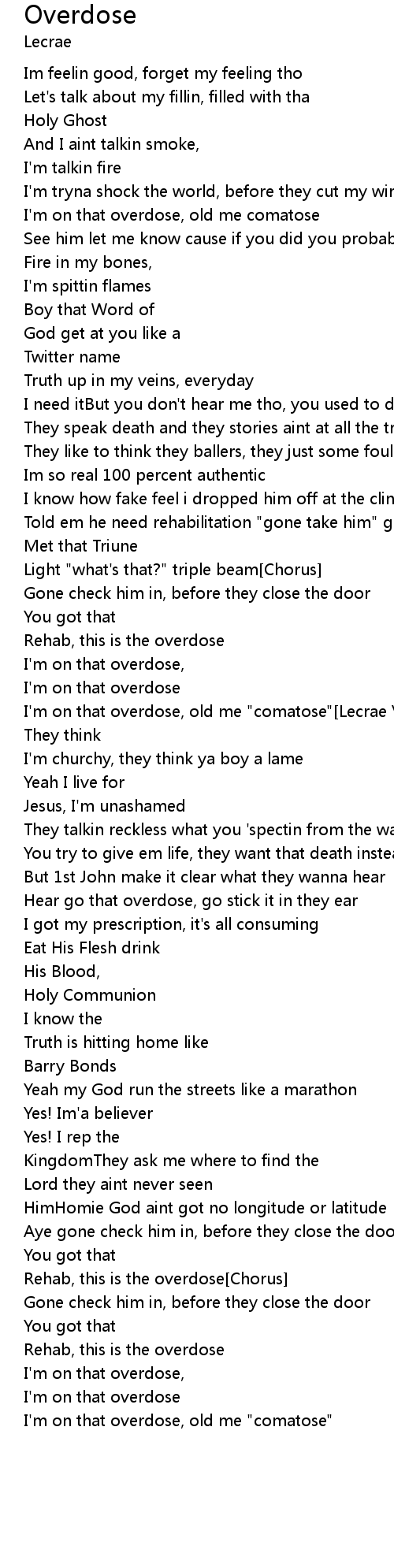 I'm on that overdose, old me "comatose"[Lecrae Verse 2] |