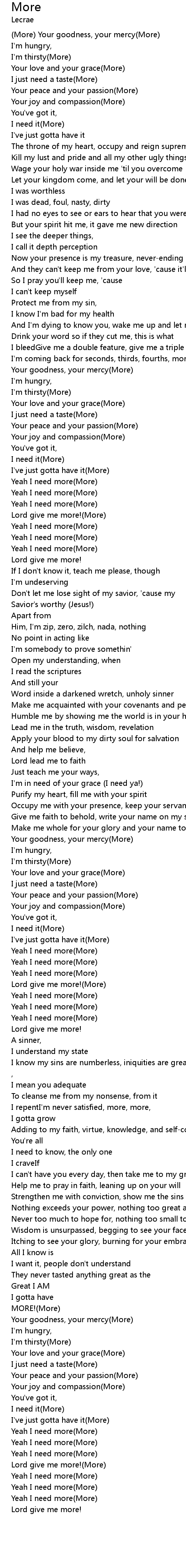 I'm coming back for seconds, thirds, fourths, more, more, more!(More) |