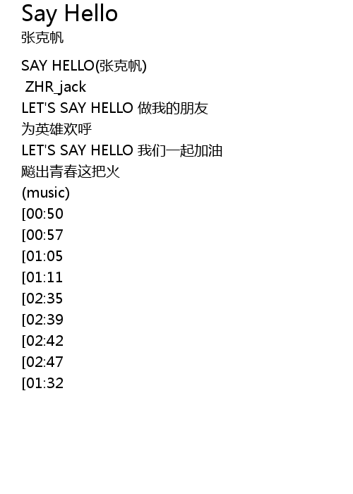 | [00:00] | SAY HELLO(张克帆) |