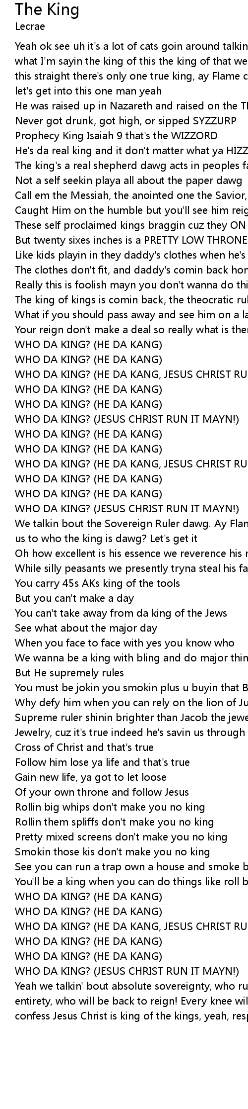 WHO DA KING? (JESUS CHRIST RUN IT MAYN!) |