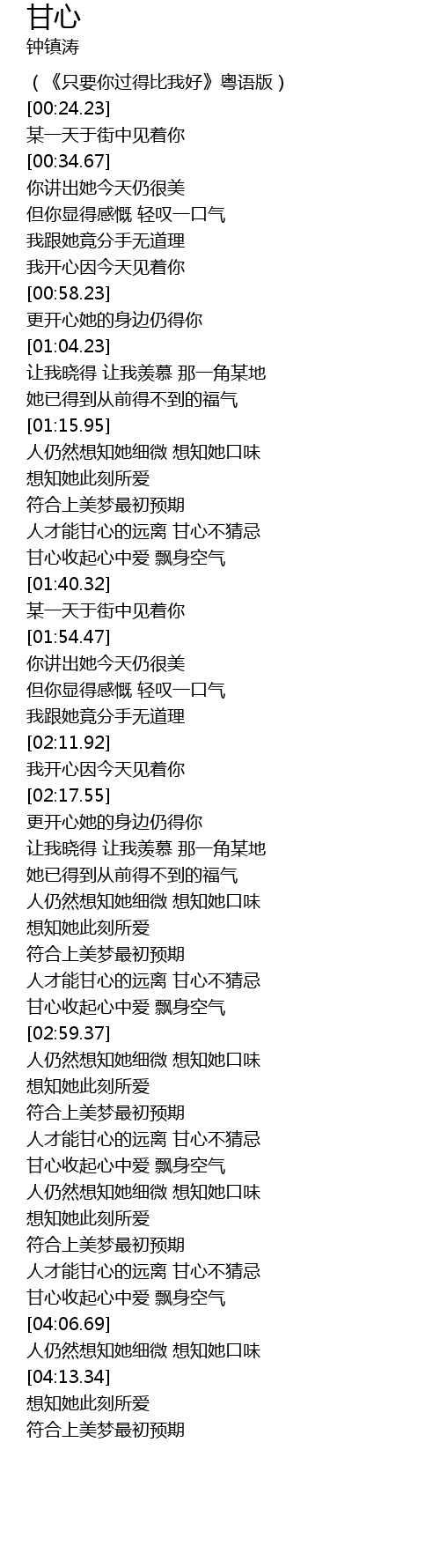 | [00:14.99] | (《只要你过得比我好》粤语版) |