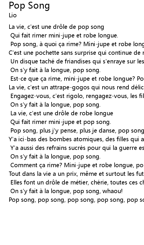 | Pop song, plus j'y pense, plus je danse, pop song. | |