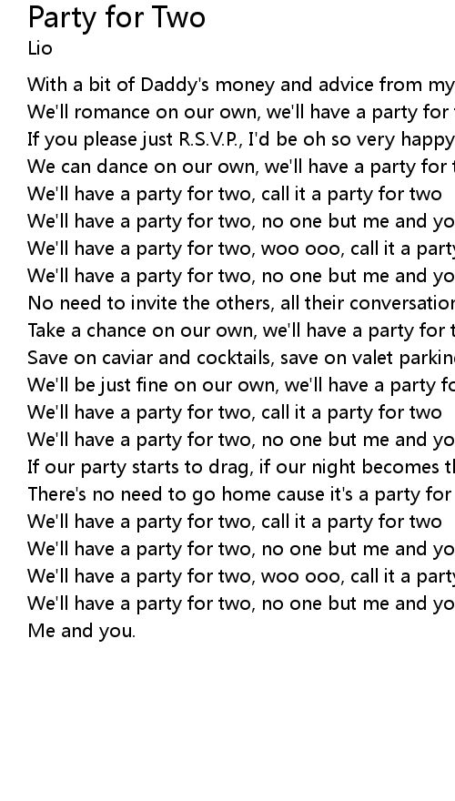 We'll have a party for two, woo ooo, call it a party for two, woo ooo |