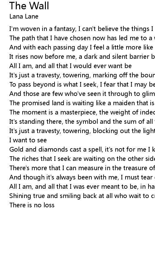 And though it's always been with me, I must tear down the Wall and let it be |