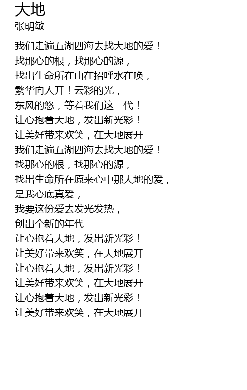 | [02:13.47] | 让心抱着大地,发出新光彩! |