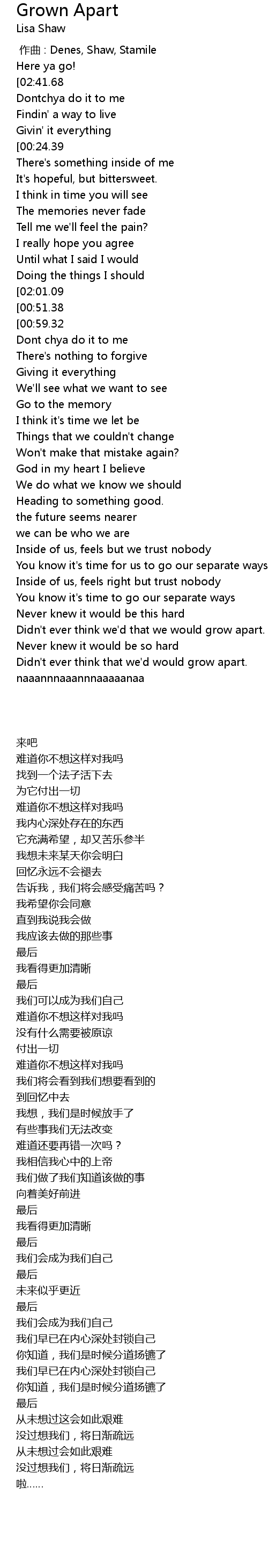 | [03:20.00] | Didn't ever think that we'd would grow apart. |