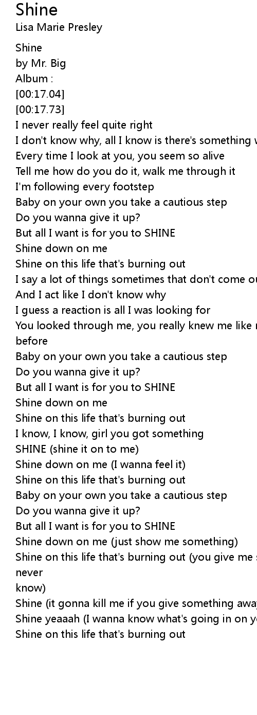 Shine yeaaah (I wanna know what's going in on your mind) |