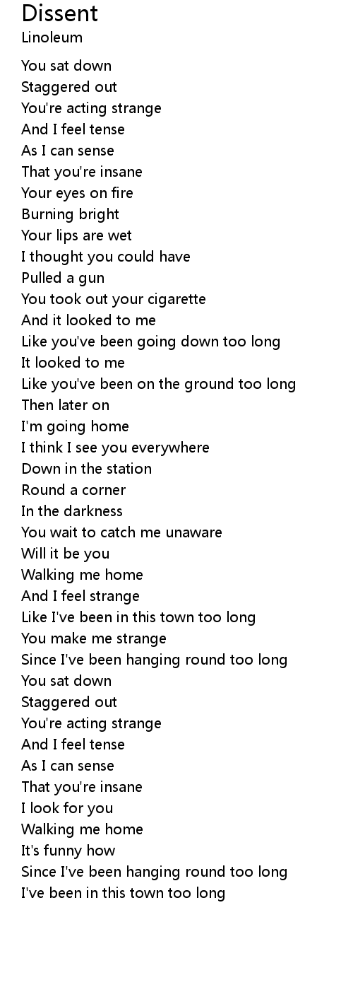 | Like I've been in this town too long | |