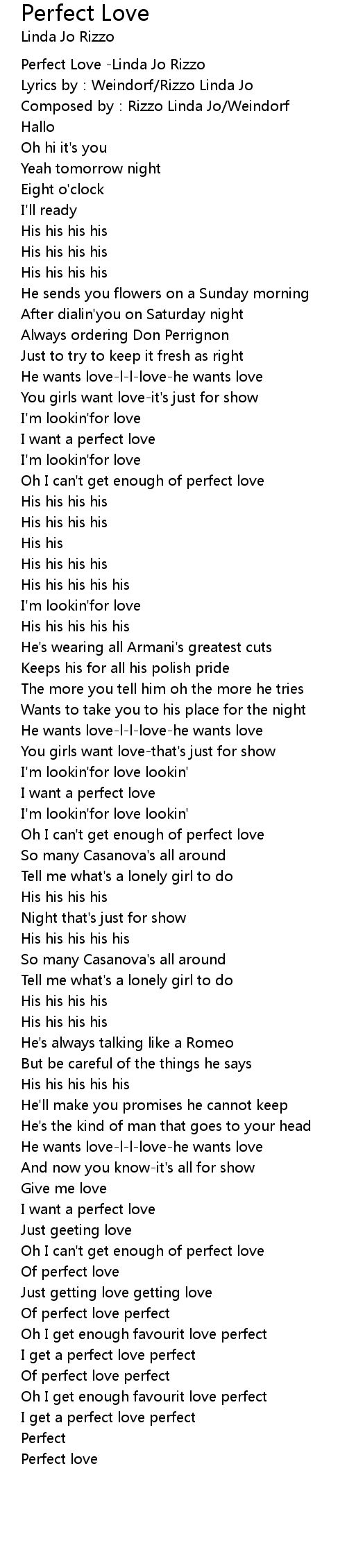 | [00:00.196] | Perfect Love Linda Jo Rizzo |