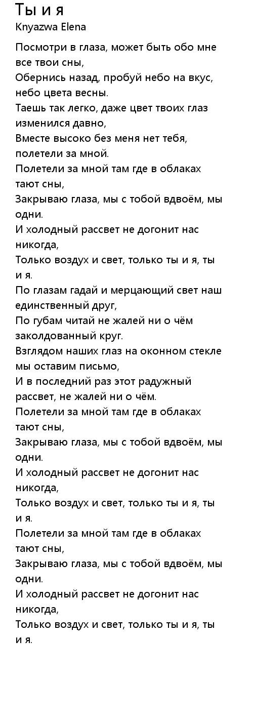 Ты и я 歌词