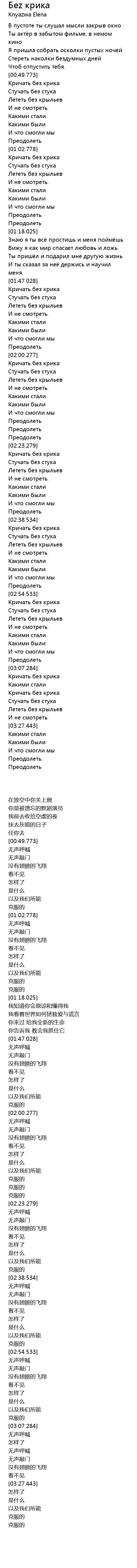 | [00:53.768] | Лететь без крыльев |