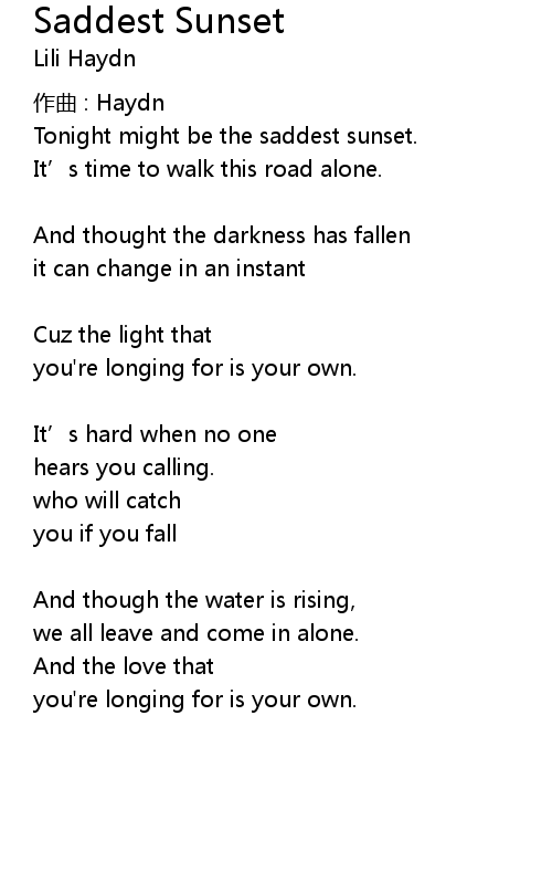 | 歌曲 | Saddest Sunset |