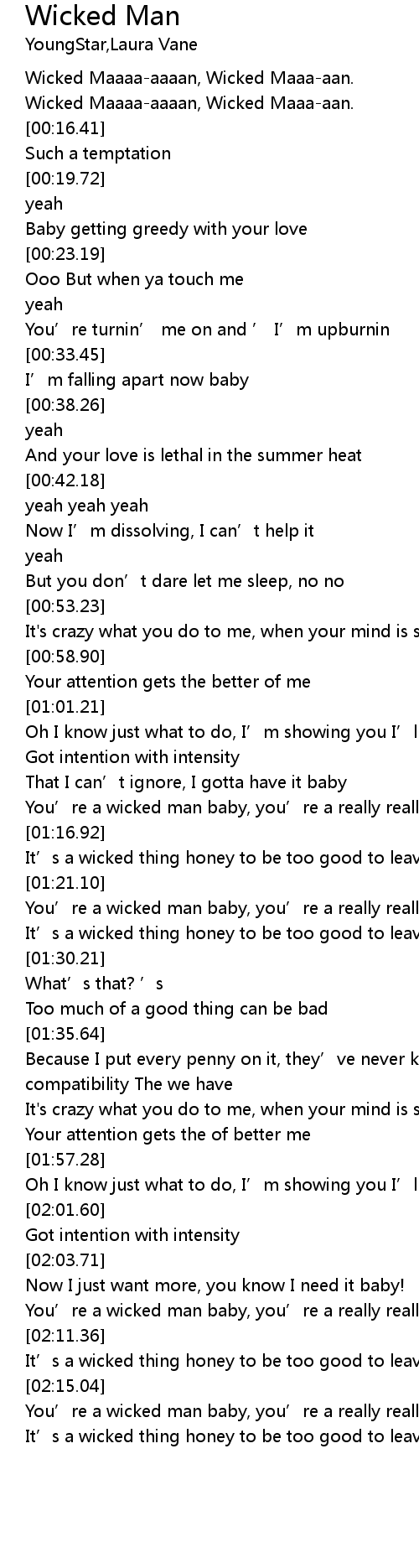 | [00:00.92] | Wicked Maaaa-aaaan, Wicked Maaa-aan. |