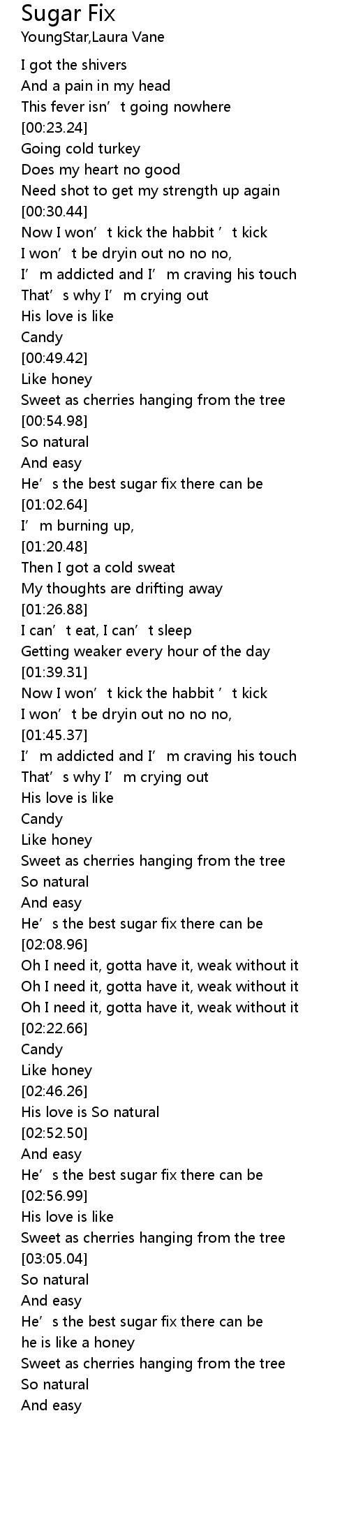 | [01:00.16] | He’s the best sugar fix there can be |