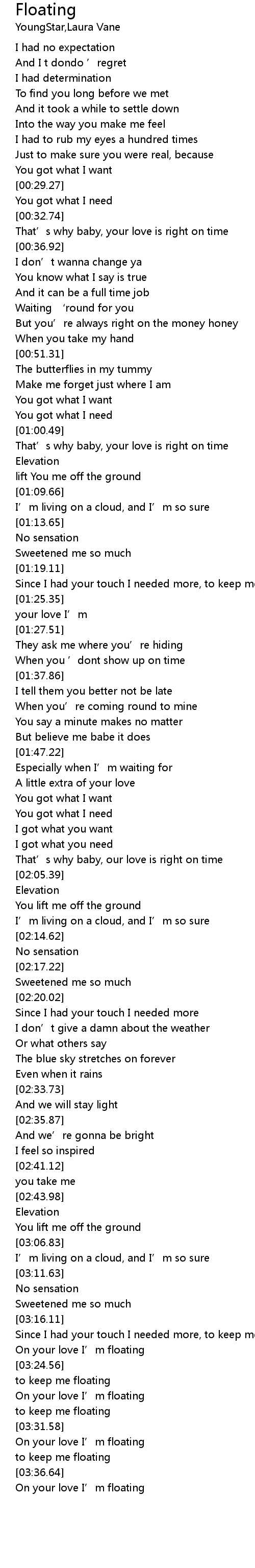 | [03:37.27] | On your love I' m floating |
