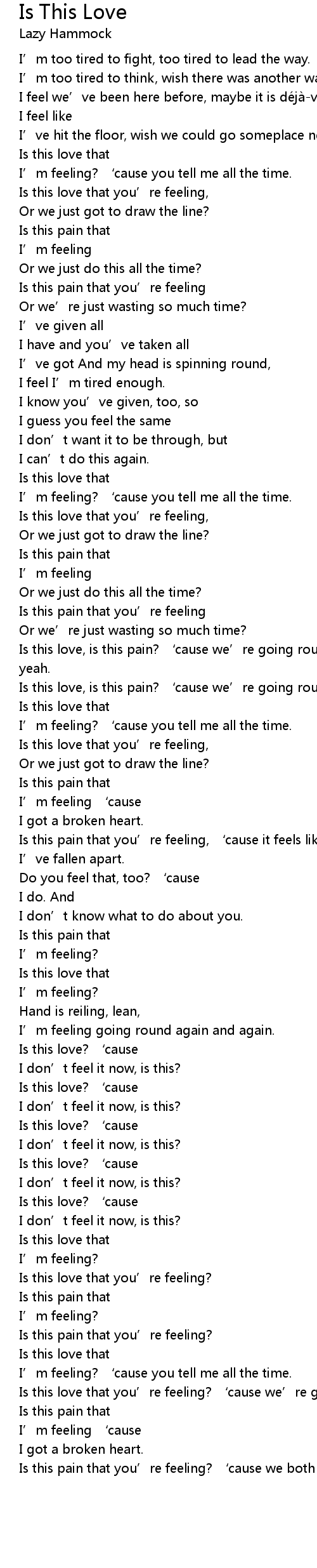 | Is this love, is this pain? ' cause we' re going round again and again, oh yeah. | |