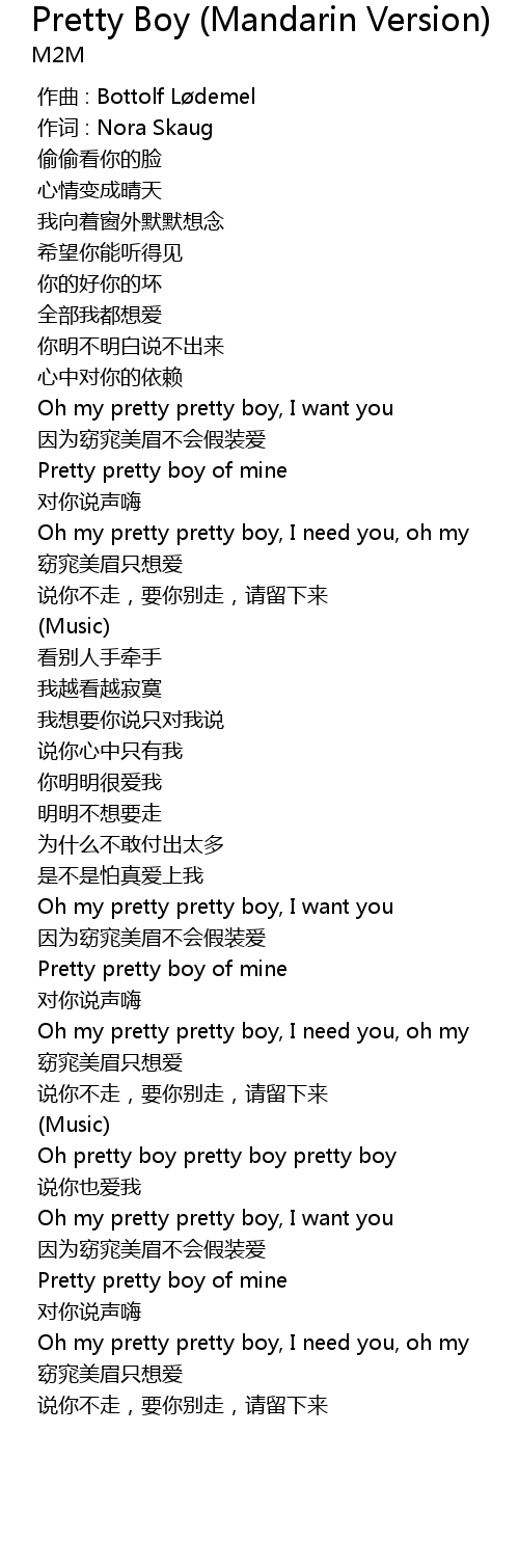 | 歌曲 | Pretty Boy (Mandarin Version) |