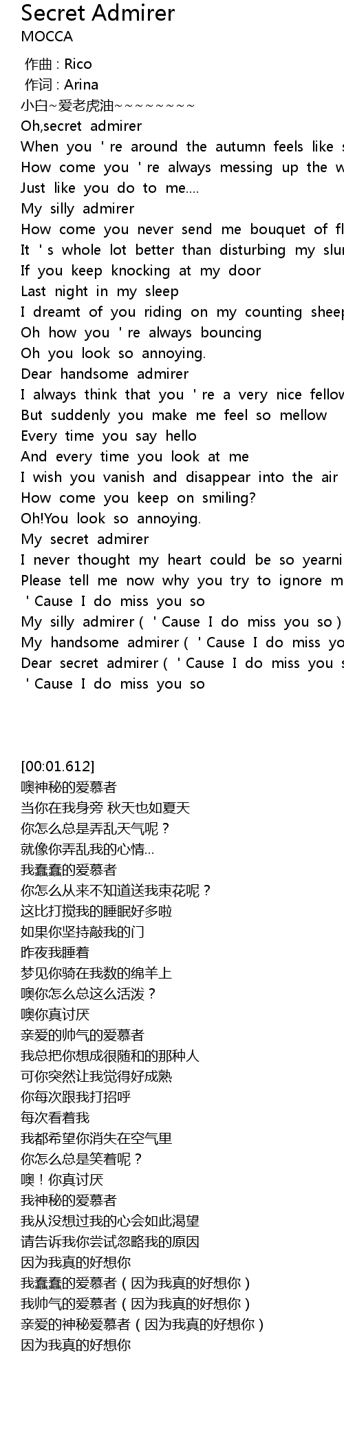 | [02:49.392] | Dear secret admirer('Cause I do miss you so) |