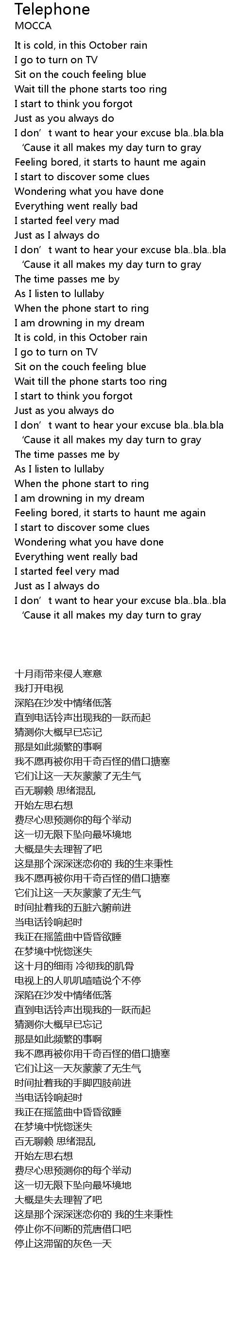 | [00:33.570] | 直到电话铃声出现我的一跃而起 |